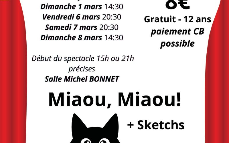 Les samedi 21, 28 février et 7 mars à 20H30. Les dimanche 22 février et 1er mars à 14H30 et le vendredi 6 mars à 20H30.