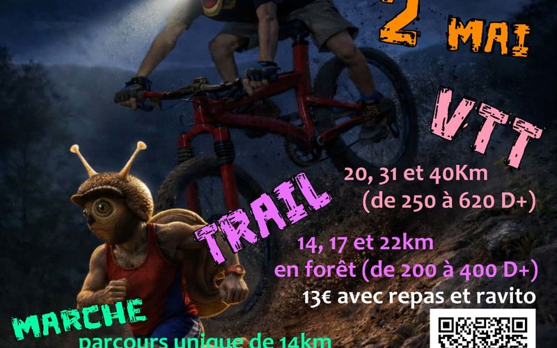 Trail : Boucle sans vélo (pas de compétition, sortie nature). Parcours 14 / 17/ 22km avec une partie en foret. Vêtements réfléchissant et éclairage avant arrière obligatoires. (D+ 150 à 400m)