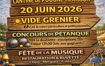 Journée en partenariat avec la commune de Pougne-Hérisson et le Comité d’animation. Restauration sur place le soir ! Remplissez-vous le gosier et les esgourdes.
