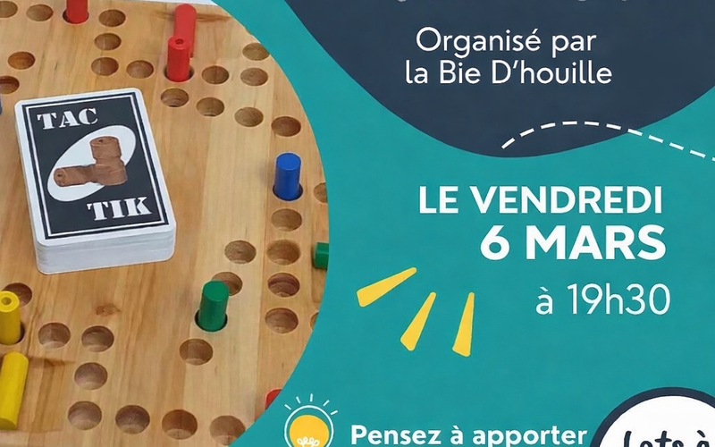 Tournoi de TAC-TIK organisé par l'association "La Bie D'houille" le vendredi 06 mars à 19h30 à la salle des fêtes de Fénery.
