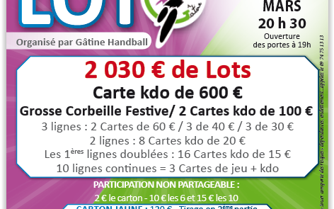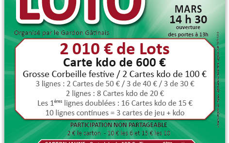 Les réservations seront ouvertes à partir du 4 février à partir de 12 H auprès d'Isabelle Gaillard au numéro : 0549700221 ou au 0676537818.