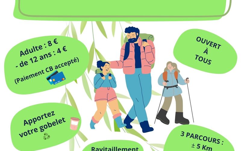 Marche (nouveau) : Boucle sans vélo. Parcours unique 14km avec une partie en foret. Vêtements réfléchissant et éclairage avant arrière obligatoires. (D+ à venir)