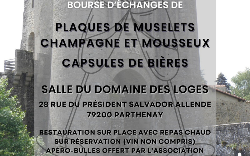 L'association culture et loisirs des loges organise sa quinzième bourse d'échange de plaques de muselets et capsules de bières le 1 mars 2026 salle du domaine des loges rue Salvador Allende Parthenay.