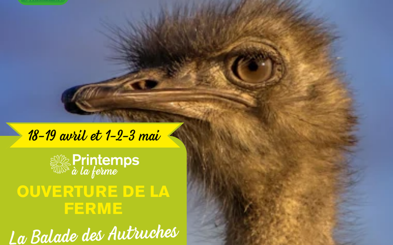Dans le cadre de l’opération Printemps à la Ferme, le réseau Bienvenue à la Ferme vous invite à découvrir La Balade des Autruches, située à La Peyratte, pour une expérience originale et dépaysante au cœur de la nature Cette ferme du réseau vous propose de partir à la rencontre d’animaux fascinants tels que les autruches, émeus et nandous, mais aussi de nombreux autres compagnons comme les chèvres, moutons ou poneys. Une belle occasion de découvrir un élevage atypique et de partager un moment privilégié avec les animaux. Au programme : visite libre ou guidée du parc, découverte des différentes espèces et échanges avec le producteur dans une ambiance conviviale et familiale.
