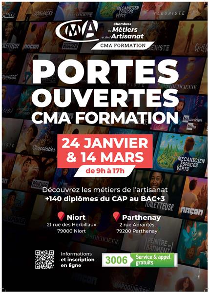 Venez explorer les opportunités futures de votre carrière lors de la journée portes ouvertes de CMA-Formation. Joignez-vous à nous pour explorer les voies de l'orientation, de la formation et de l'alternance, poser toutes vos questions sur les contrats en alternance, la rémunération, et découvrir les opportunités de reconversion professionnelle. Cette journée spéciale, qui rassemble les 15 centres de formation néo-aquitains, offre une expérience d'orientation complète. Rencontrez des experts de l'orientation, testez votre motivation pour un domaine d'activité, échangez avec des enseignants, des étudiants, des entreprises et des partenaires, et plongez dans l'univers de la formation en alternance aux côtés de passionnés ! Inscription en ligne.