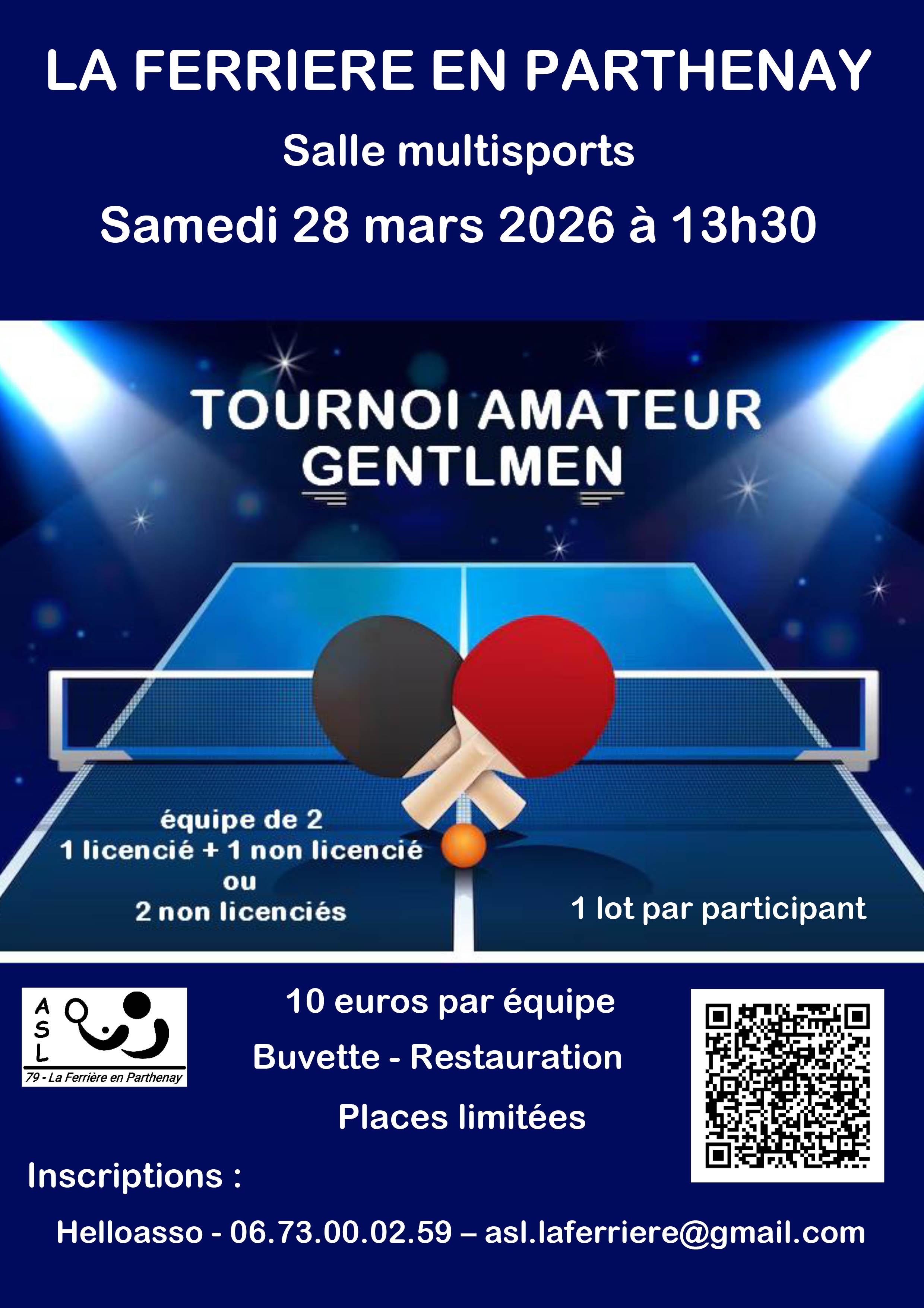 Tarifs : 10€ par équipe Places limitées - inscriptions : Hello Asso - 06 73 00 02 59 - asl.laferriere@gmail.comBuvette - Restauration
