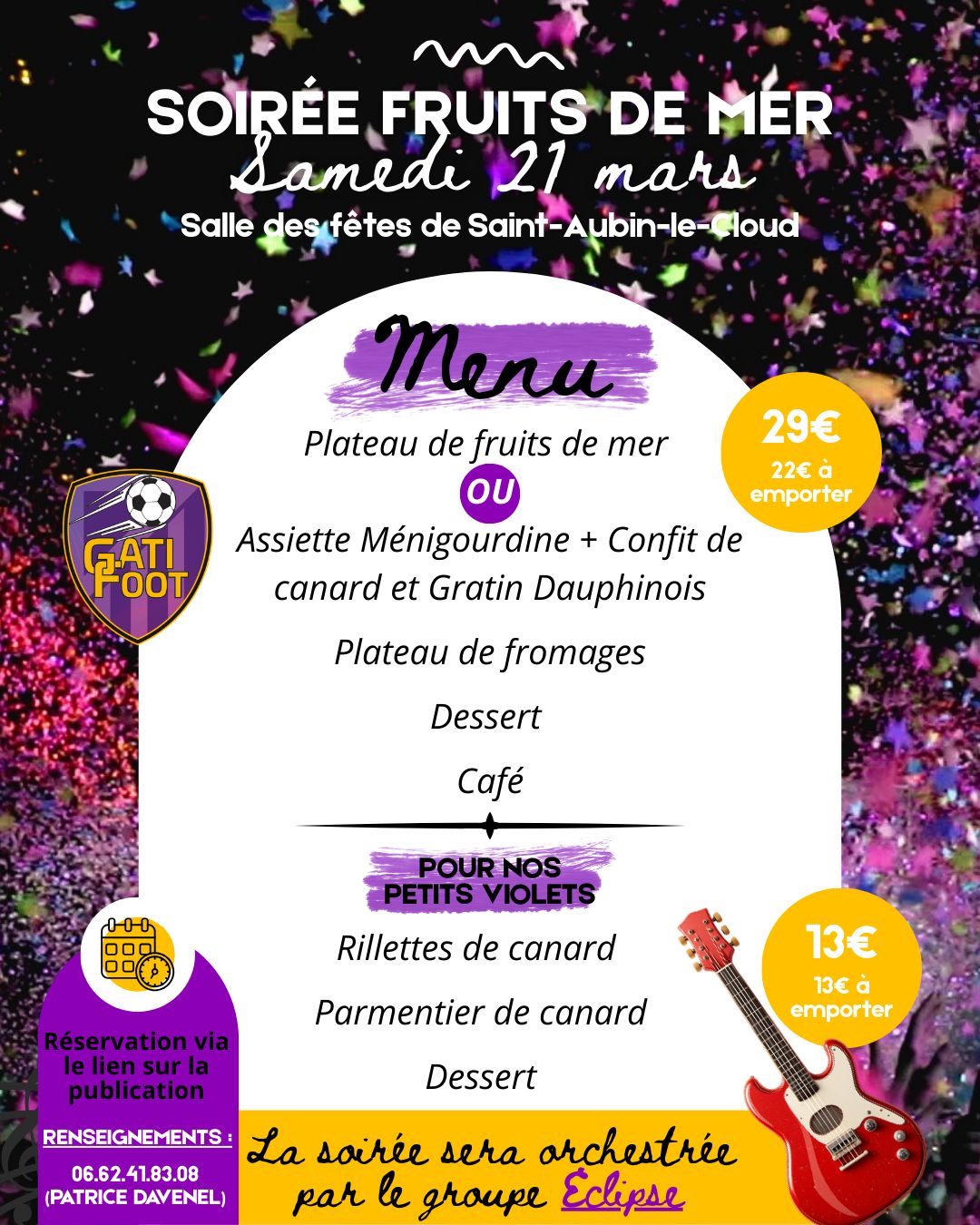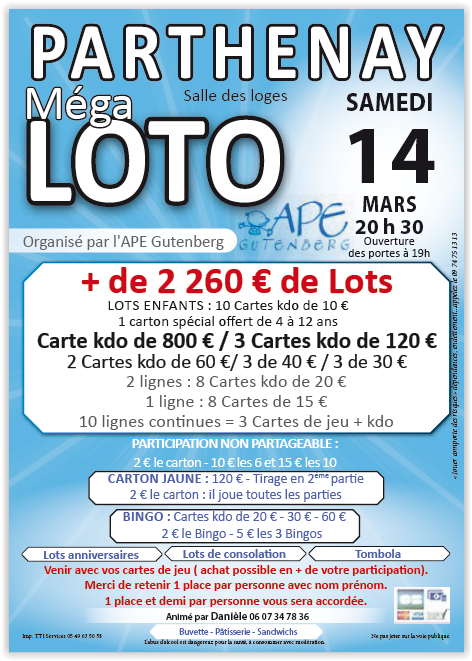 Les réservations seront ouvertes à partir du 4 février à partir de 12 H auprès d'Isabelle Gaillard au numéro : 0549700221 ou au 0676537818.