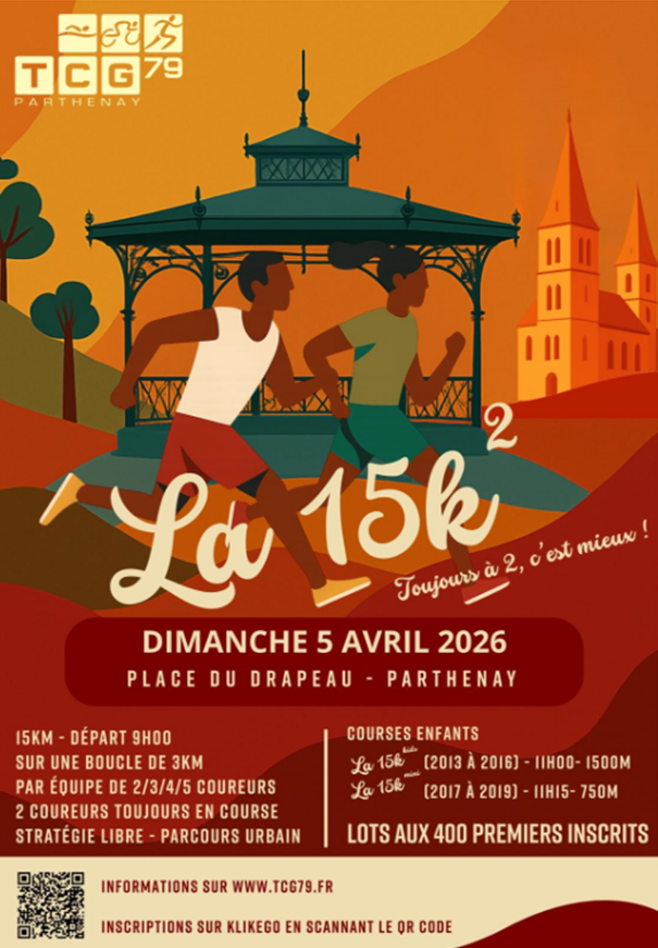 Course à pieds en ville par équipe de 2, 3, 4 ou 5. Chaque équipe doit être représentée par 2 équipiers sur chaque tour. Il y a 5 tours de 3 km à faire. Chacun gère ses changements de co-équipiers comme bon lui semble. il existera aussi pour les enfants la 15K2 Kids et la 15 K2 Mini.