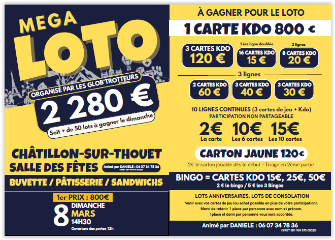 Renseignements et inscriptions au 05 49 63 12 98. En espérant vous voir nombreux !