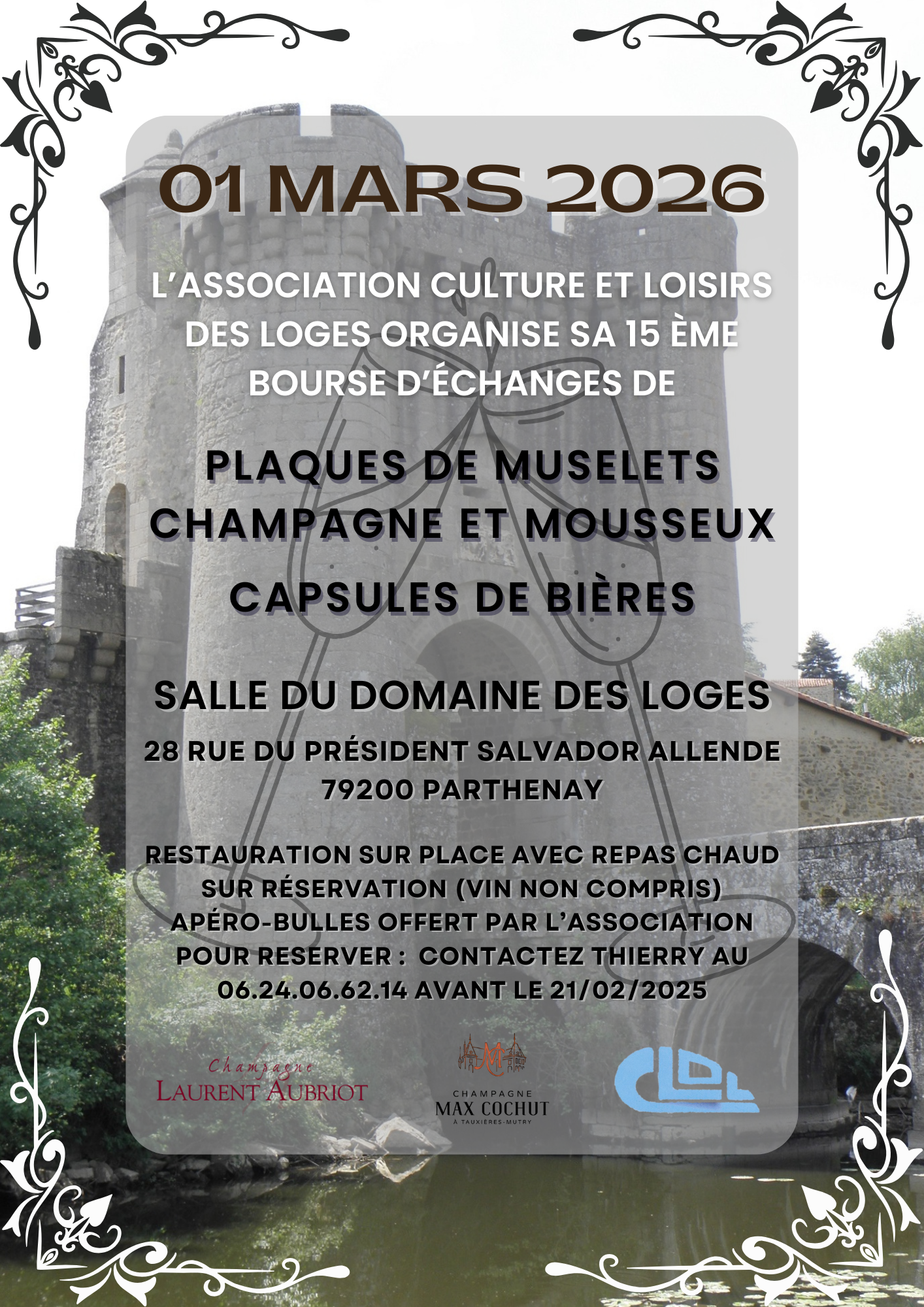 L'association culture et loisirs des loges organise sa quinzième bourse d'échange de plaques de muselets et capsules de bières le 1 mars 2026 salle du domaine des loges rue Salvador Allende Parthenay.